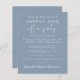 Elégant budget-friendly bleu poussiéreux enregistrer la date annonce pour une réception ou une fête pour célébrer votre événement ou mariage privé. "Save the Date For Our Happily Ever After Party" est écrit dans une simple typographie blanche et un script blanc élégant avec des swashes. Personnalisez votre faire-part et enregistrez les détails de la date, et ajoutez vos noms dans un script de type signature. À l'arrière, entrez l'adresse URL de votre site Web mariage pour créer un code QR que les invités peuvent analyser pour suivre vos photos et événements mariages, et ajoutez vos prénoms et vos dates de mariage et de réception.