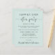 Elégant petit-déjeuner vert menthe ou faire-part mariage privé et accueil. L'avant présente "Happily Ever After Party" en typographie simple et un script élégant avec des swashes; personnalisez votre faire-part et invitation et ajoutez vos noms dans un script signature. Au contraire, ajoutez l'adresse de votre site Web mariage pour créer un code QR que les invités peuvent scanner pour suivre vos photos mariages, tous les détails et RSVP en ligne, et ajoutez vos prénoms et vos dates de mariage et de réception.