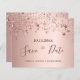 Une fille et tendance Sauvez la Date pour une Quinceañera, 15ème anniversaire fête. Un arrière - plan rose féminin, rose d'or faux métallique à l'aspect décoré d'étoiles. Personnalisez et ajoutez une date et un nom/âge. Le texte : Save the Date est écrit avec un grand script de style à la main tendance.