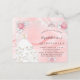 Une invitation moderne, élégante et glamour pour une Quinceañera, 15ème anniversaire. Un satin rose vif, imprimé de soie en arrière - plan, décoré avec de la poussière de parties scintillant en faux argent, une tiare et une robe et des fleurs rose et blanche. Le nom est écrit avec un script de style moderne écrit à la main. Personnalisez et ajoutez les détails de votre fête.