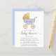 Cette jolie invitation à la douche pour bébé garçon abordable présente une aquarelle bleu pastel et or d'un chariot bébé rétro et "baby shower" écrit dans un script élégant avec des swashes. Personnalisez le texte sur le chariot ou laissez vide.