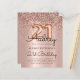 Budget Élégant Moderne Parties scintillant Étincelle Rose Or Metallic Balloon 21e Anniversaire Invitation. Cette Feminine Girly Adult Invitation fête d'anniversaire avec élégante écriture de calligraphie lettrée à la main et mignon rose en or feuille d'or nombre ballons sur feuille métallique look arrière - plan rose pâle. Idéal pour une (vingt et un) fête d'anniversaire de femme de 21 ans, cette invitation saisit parfaitement l'essence d'une fête d'anniversaire rose moderne en or et en parties scintillant rose vif. Des invitations d'anniversaire abordables.