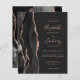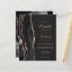 Le bord gauche de cette élégante faire-part de mariage moderne est orné d'une bordure en aquarelle noire ornée d'une parties scintillant en or rose. Le texte personnalisable associe écriture rose, copperplate et polices italiques sur un arrière - plan gris fusain foncé. L'envers présente un design d'agate d'or noir et rose assorti.