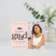 Annoncez au monde que votre groupe favori a atteint son jalon avec cet invitation faire-part à budget unique, simple, moderne et personnalisé. Une typographie grise, grise, grise et une icône de casquette recouvrent un arrière - plan rose pâle. Sur la droite, ajoutez une photo de votre choix. Personnalisez le texte personnalisé avec le nom de votre diplômé, le nom de l’école, la date et l’année de classe. Au verso, ajoutez votre note personnelle, la prochaine école où ils vont, les renseignements sur la fête, etc. Garanti d'ajouter du plaisir élégant à leur occasion spéciale! Il suffit de remplacer l’échantillon de photo par un de vos propres, de taper les informations de votre grade, de customiser le message au dos, et de personnaliser facilement cette invitation de faire-part de graduation budgétaire. S'il vous plaît, envoyez-moi un message avec toute question ou demande.
