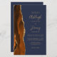 Économisez le coût d'impression et d'envoi de cartes RSVP séparées avec cet élégant faire-part de mariage tout-en-un moderne. Le bord gauche est doté d'une bordure d'aquarelle couleur orange brûlée et rouille, recouverte d'une fausse parties scintillant dorée. Le texte personnalisable combine écriture manuscrite couleur or, cuivre et polices italiques sur un arrière - plan bleu marine. L'envers offre de l'espace pour les détails mariages sur un arrière - plan bleu marine solide, ainsi qu'un code QR que les invités peuvent scanner pour visiter votre site Web et RSVP.