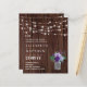 Donnez le ton pour la fête de votre pays avec ces articles de papeterie mariage rustique avec un arrière - plan en bois chaleureux, des lampes à cordes brillantes et de charmants bocaux en maçon. Parfait pour les mariages de grange, les fêtes de plein air ou les soirées douillettes, ce design rustique crée une atmosphère accueillante et romantique. Customisez avec vos noms, les détails du mariage et l'information de l'événement pour concevoir l'invitation parfaite / papeterie qui reflète votre style rustique.