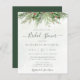 Belles invitations à la douche nuptiale à prix abordable avec des illustrations d'aquarelle botanique peintes à la main de verdure hivernale, branches de pin et d'épinette, cônes et baies sèches. Un choix parfait pour les mariages à thème hiver ou Noël.