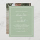 Budget Sage Mariage vert Printemps ou été Photo sur Back Wedding Invitations - comprend une belle et élégante typographie de script avec une couleur moderne simple et classique pour la célébration spéciale de mariage.