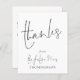 Budget Script Futur Mme Fête des mariées Merci. Un prix économique PETIT 4,5 po x 5,6 po alternatif. Disponible dans un STOCK CARTE SEMI GLOSS 110 lb qui est l'option par défaut (recommandé pour les invitations), OU un STOCK PAPIER THINNER SATIN FINISH 80 lb (idéal pour les boîtiers). Les enveloppes sont en option et légèrement plus grandes que la taille de la carte. Merci et The Future Mrs sont mis dans un élégant script de style manuscrit sur le devant et le reste du texte de chaque côté vous pouvez facilement personnaliser avec vos noms, et votre message de remerciement. Affiché en noir et blanc, cependant peut être changée à n'importe quelle couleur de votre choix via l'option personnaliser supplémentaire.
