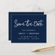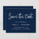 Budget Bleu Marine Moderne et Élégant Minimaliste Écriture Manuscrite Script Enregistrer la Carte de Date de Mariage. La carte d'invitation enregistrer la date comprend une typographie moderne manuscrite avec un design chic et simple que vous pouvez ajouter à votre photo de fiançailles personnalisée.