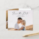 Budget Script Photo Wedding Enregistrer la carte Date. Le dos comprend une deuxième photo avec des détails supplémentaires. Cliquez sur le bouton Modifier pour customiser cette conception avec vos photos et les détails du mariage.