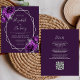 Cette élégante faire-part de mariage moderne présente un cadre géométrique argenté décoré de fleurs violettes et argentées sur un arrière - plan prune violet. Le texte personnalisable combine écriture fantaisie gris argenté, cuivre et polices italiques. Ajoutez des détails supplémentaires au verso, ainsi qu'un code QR pour aider vos invités à visiter votre site Web mariage.