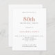 Budget Simple Texte Blush Invitation de 80e anniversaire. Un rapport qualité/prix inférieur 4,5 x 5,6 pouces alternative par défaut à l'option semi-brillant qui est recommandé pour les invitations et est une épaisseur similaire à une carte postale. L'option satin est beaucoup plus mince papier mieux pour les enceintes.