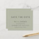 Sage Vert Simple Texte Doux Enregistrer La Date. Un prix économique PETIT 4,5 po x 5,6 po alternatif. Disponible dans un STOCK SEMI-GLOSS 110 lb CARD qui est l'option par défaut (plus épais pour les invitations), OU un STOCK SATIN FINISH 80 lb THINNER PAPER (idéal pour les boîtiers). Les enveloppes sont en option et légèrement plus grandes que la taille de la carte. Elégance simple avec Save The Date dans un script moderne.Le reste du texte que vous pouvez facilement personnaliser.Montré ici en noir sur vert sauge pâle doux, cependant le texte et les couleurs arrière - plans peuvent être changés si vous le souhaitez via l'option personnaliser plus.