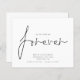 Nous avons décidé sur Forever QR Code Mariage Enregistrer la Date. Un prix économique PETIT 4,5 po x 5,6 po alternatif. Disponible dans un STOCK SEMI-GLOSS 110 lb CARD qui est l'option par défaut (plus épais pour les invitations), OU un STOCK SATIN FINISH 80 lb THINNER PAPER (idéal pour les boîtiers). Ajoutez votre code QR à votre site Web mariage au verso en remplaçant le code QR de l'exemple. Un design noir et blanc simple et élégant pour invitation vos invités pour sauver votre date. Nous avons décidé sur Forever qui est dans un script stylé est au centre.Le reste du texte que vous pouvez facilement personnaliser. Les couleurs du texte et de l'arrière - plan peuvent être modifiées si vous souhaitez mieux convenir à votre thème mariage via l'option customiser plus loin.