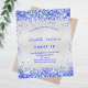 Pour une soirée branchée Sweet 16, 16e anniversaire. Un arrière - plan métallique à l'aspect faux argenté. Décoré de parties scintillant en faux bleu royal. Personnalisez et ajoutez un nom et des détails du parti. Le nom est écrit avec un script de style manuscrit