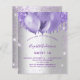 Un arrière - plan élégant à l'allure fausse argent. Décoré de violet, de faux parties scintillant couleur lavande et de ballons. Personnalisez et ajoutez un nom, un âge et des détails de la fête. Le nom est écrit avec un script de style manuscrit