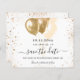 Un arrière - plan blanc chic décoré de parties scintillant et de ballons en faux or. Personnalisez et ajoutez une date et un nom/âge. Le texte : Save the Date est écrit avec un grand script de style à la main tendance.