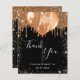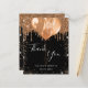 A Sweet 16, carte de remerciements d'anniversaire. Une couleur arrière - plan noire chic. Avec des gouttes de parties scintillant en faux or, la peinture goutte à goutte et les ballons. Sur l'avant, script écrit et texte : Merci, votre texte, titre et une date. Retour : Personnalisez et ajoutez votre note de remerciement et votre nom.