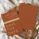 Budget Boho Mariage Elegant Terracotta et Gold Enregistrer les cartes de dates. Les cartes Save the Date contiennent une typographie de script moderne, lettrée à la main, qui sont élégantes, simples et modernes à utiliser après que vous minimaliste simple célébration de mariage.