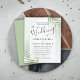 Vos invités aimeront ce design tropical élégant et sophistiqué. Il présente un grand feuillage tropical en aquarelle sur un arrière - plan vert sauge doux. La calligraphie moderne se situe dans une arche transparente en forme d'arc. Facile à modifier avec vos détails uniques.