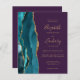 Le bord gauche de cette élégante faire-part de mariage moderne comporte une bordure turquoise en aquarelle ornée d'une parties scintillant en faux or. Le texte personnalisable associe écriture manuscrite dorée, copperplate et polices italiques sur un arrière - plan violet profond opulent. L'envers offre de l'espace pour les détails mariages sur un arrière - plan violet solide, ainsi qu'un code QR que les clients peuvent scanner pour visiter votre site Web et RSVP, qui économise le coût d'impression et d'envoi de cartes RSVP séparées.