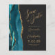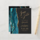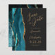 Le bord gauche de cet élégant mariage moderne, sauf la carte de date, est doté d'une bordure d'aquarelle bleue turquoise, découpée avec une parties scintillant en faux or. Le texte personnalisable combine un script de couleur or et des polices sans serif sur un arrière - plan noir en ardoise. L'envers présente un design d'agate turquoise et or assorti.