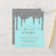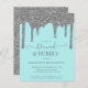 Budget Aqua Turquoise Blue Silver Sparkle Parties scintillant Drips Brunch et Bubbly Bridal Shower Invitation avec des gouttes de fausse parties scintillant et arrière - plan turquoise classe. Parfait pour votre événement de luxe. Veuillez nous contacter à cedarandstring@gmail.com si vous avez besoin d'aide pour la conception ou les produits correspondants.