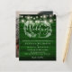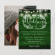 Doté de jolies lampes à cordes et d'une guirlande florale dessinée à la main, cet élégant faire-part de mariage en bois rustique et économique peut être personnalisé avec vos informations en lettrage chic sur un arrière - plan de panneaux en bois vert émeraude et votre photo spéciale au verso. Conçu par Thisisnotme©
