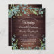 Invitations de célébration mariages rustiques imprimées sur papier léger, idéal pour les budgets conservateurs et la livraison manuelle aux invités. Beau bois foncé de campagne avec aquarelle eucalyptus et feuillage verdoyant avec accents d'or et élégante typographie de script. Tout le texte est modifiable pour modifier le libellé en fonction de vos besoins. Contactez le concepteur via Zazzle Conversation ou makeitaboutyoustore@gmail.com si vous souhaitez modifier ce design, sur un autre produit ou des éléments de coordination.