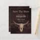 Budget western pays antique vintage style cowboy. Fun brun beige bois texture mariage enregistrer la date cartes plates. Invitations rustiques au crâne de vache taureau. Utilisez un petit humour avec ce design de style de ferme mignon et drôle. La typographie peut être personnalisée. Vieux ouest sauvage, unique. Cool, animal de ferme branché. Personnaliser script et typographie. Copyright de l'image Marg Seregelyi Photography.
