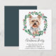 Invitations amis et la famille à votre fête de Noël ou de Fêtes avec cet élégant terrier de Noël yorkshire dans une carte design de couronne, et décoration assortie. Cette carte de vacances en yorkie dispose d'un chien d'aquarelle dans une couronne verte et rouge avec des saints et des baies. Personnalisez avec tous les détails de votre fête de noël. Cette invitation de noël de terrier yorkshire sera un favori parmi les amateurs de yorkie, amoureux de les chiens et amoureux des animaux. Visitez notre collection pour assortir les cartes de noël du yorkshire terrier, la décoration de la maison et les cadeaux. DROIT D'AUTEUR © 2020 Judy Burrows, Black Dog Art - Tous droits réservés. Budget Yorkshire Terrier Chien de Noël Invitation