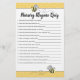 Ces cartes de jeu super mignonette jaune et gris bumble bee's nursery rhyme quiz de jeu sont une façon amusante de jouer à des jeux à votre baby shower! Les réponses se trouvent à l'arrière de la carte !