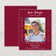 Personnalisez et ajoutez une photo, un nom, le nom de l'école, la classe et les détails de la fête. Une couleur arrière - plan bordeaux, texte blanc. 1 feuille = 1 invite imprimé bord à bord.