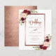 Belle aquarelle rouge bordeaux design floral avec des accents de feuille d'or faux rose et écriture manuscrite. Le dos de la carte est un rose imprimé en feuille d'or photo effet. Burgundy Red Floral Rose Gold Script Faire-part de mariage. Personnaliser avec votre texte mariage