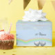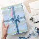 Joli papier d'emballage bleu clair avec ma conception de deux coeurs en étain flottant sur l'eau sous un arc-en-ciel. Le texte personnalisable dit "10 ans".