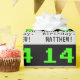Cette conception de papier d'emballage d'anniversaire amusant et nerdy comprend un grand jeu vidéo vintage vert numéro "14" sur un arrière - plan de couleur noire. Il contient également le message de voeux d'anniversaire "Joyeux 14e anniversaire", ainsi qu'un nom qui peut être modifié. Un papier d'emballage à thème d'anniversaire comme celui-ci pourrait être une façon amusante d'envelopper un cadeau ou un cadeau donné à quelqu'un qui célèbre son quatorzième anniversaire. [~Z0000403]