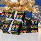 Ce papier d'emballage d'anniversaire coloré, amusant et gai comporte un grand nombre de "17" et le message "HAPPY BANTHDAY", tous deux colorés avec un motif inspiré par un gradient de spectre arc-en-ciel, ainsi qu'un nom de destinataire personnalisé jaune gras. Le arrière - plan est noir de couleur. Un papier d’emballage sur le thème de l’anniversaire amusant comme celui-ci pourrait être utilisé pour envelopper un cadeau ou un cadeau pour célébrer le 17e anniversaire de quelqu’un. [~Z0000475]