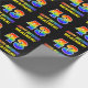 Ce papier d'emballage coloré à thème d'anniversaire joyeux, amusant et coloré comporte un grand nombre de "43" et le message "HAPPY BANTHDAY", tous deux ayant un dégradé arc-en-ciel coloré inspiré couleur motif, ainsi qu'un nom de destinataire personnalisé jaune gras. L'arrière - plan est noir de couleur. Un papier d'emballage amusant comme celui-ci pourrait être utilisé pour envelopper les cadeaux donnés à quelqu'un pour célébrer leur 43e anniversaire. [~Z0000475]