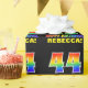 Ce papier d'emballage d'anniversaire coloré, joyeux et amusant comporte un grand nombre de "44" et le message "HAPPY BANTHDAY", tous deux avec une couleur motif inspirée par un gradient de spectre arc-en-ciel, ainsi qu'un nom de destinataire personnalisable jaune gras. L'arrière - plan est noir de couleur. Un papier d’emballage à thème d’anniversaire amusant comme celui-ci peut être utilisé pour envelopper un cadeau ou un cadeau qui est donné pour célébrer le 44e anniversaire de quelqu’un. [~Z0000475]
