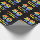 Ce papier d'emballage coloré, joyeux et amusant sur le thème de l'anniversaire comporte un grand nombre de "49" et le message "HAPPY BANTHDAY", tous deux colorés avec un motif inspiré par un gradient de spectre arc-en-ciel, ainsi qu'un nom de destinataire modifiable jaune en gras. L'arrière - plan est noir de couleur. Un papier d'emballage amusant comme celui-ci pourrait être utilisé pour envelopper les cadeaux donnés à quelqu'un pour célébrer leur 49e anniversaire. [~Z0000475]