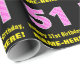 Ce papier d'emballage d'anniversaire joyeux et amusant comporte un grand nombre de "51" avec un motif rayé contenant des formes cardiaques colorées rose clair et rose foncé. Il contient également le message de salutation d'anniversaire "Joyeux 51e anniversaire", ainsi qu'un nom de destinataire personnalisé. Un papier d'emballage amusant comme celui-ci pourrait être utilisé pour envelopper des cadeaux donnés à quelqu'un pour célébrer son 51e anniversaire. Ce pourrait aussi être un choix amusant pour quelqu'un qui a un anniversaire qui tombe le jour de la Saint-Valentin (14 février), en raison de ses symboles et couleurs de coeur aimés. [~Z0000435]