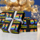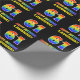 Ce papier d'emballage joyeux, amusant et coloré sur le thème de l'anniversaire comporte un grand nombre de "61" et le message "HAPPY BANTHDAY", tous deux colorés avec un motif inspiré par un gradient de spectre arc-en-ciel, ainsi qu'un nom de destinataire personnalisable jaune gras. L'arrière - plan est noir de couleur. Un papier d’emballage à thème d’anniversaire amusant comme celui-ci pourrait être utilisé pour envelopper un cadeau ou un cadeau donné pour célébrer le 61e anniversaire de quelqu’un. [~Z0000475]