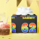 Ce papier d'emballage d'anniversaire amusant, gai et coloré comprend un grand nombre de "62" et le message "HAPPY BANTHDAY", tous deux avec une couleur motif inspirée par un gradient de spectre arc-en-ciel, ainsi qu'un nom de destinataire personnalisé jaune gras. L'arrière - plan est noir de couleur. Un papier d’emballage thématique pour anniversaire amusant comme celui-ci peut être utilisé pour donner un cadeau ou un cadeau pour célébrer le soixante-deuxième anniversaire de quelqu’un. [~Z0000475]