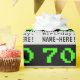 Cette conception de papier d'emballage amusant et nauséabonde sur le thème de l'anniversaire comprend un grand modèle de jeu d'ordinateur vintage vert numéro "70" sur un arrière - plan de couleur noire. Il comporte également le message de voeux d'anniversaire "Joyeux 70e anniversaire", et un nom personnalisé. Un papier d'emballage amusant comme celui-ci pourrait être utilisé pour envelopper des cadeaux de soixante-dixième anniversaire ou des cadeaux donnés à un ingénieur, un historien de l'informatique, ou quelqu'un qui aime vraiment les jeux vidéo rétro. [~Z0000403]