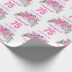 Papier à enveloppement rose à fleurs de 75e anniversaire. Personnalisez avec nom, âge et texte.