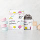 Ce papier d'emballage personnalisé présente un thème rétro des années 1990 avec un motif memphis coloré. Le motif memphis se compose de formes géométriques vives, roses, jaunes et turquoises, qui étaient populaires dans les années 90. L'expression "Joyeux anniversaire" est imprimée au-dessus d'un nom d'exemple en noir. Un échantillon d'année de naissance est imprimé dans un grand pied noir en bas à gauche du dessin. Vous pouvez personnaliser le papier d'emballage pour inclure votre propre nom ou texte personnalisé.