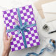 Envelopper le papier avec un motif à damiers violet et blanc. Parfait pour toutes les occasions. Personnalisable .