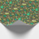 Papier de tissus avec motif, fournitures à coudre - ciseaux, boutons, bobines de fil, aiguilles. Cette conception, élaborée à partir d'un collage en papier fait main, fait un grand cadeau pour les artisans et les égouts. Bouteille, olive et vert aquamarine. © Clipso-Callipso / Julia Khoroshikh www.juliakhoroshikh.art #giftwrapping #wrapping #tissus #homéhobbies #haberdashery