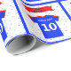 Ajoutez le nom de l'enfant d'anniversaire pour customiser ce papier d'emballage amusant. Le t-shirt sport rouge et bleu porte un grand numéro blanc 10, et le design est orné d'une banderole audacieuse "Joyeux anniversaire". Des cartes d'anniversaire assorties sont disponibles.